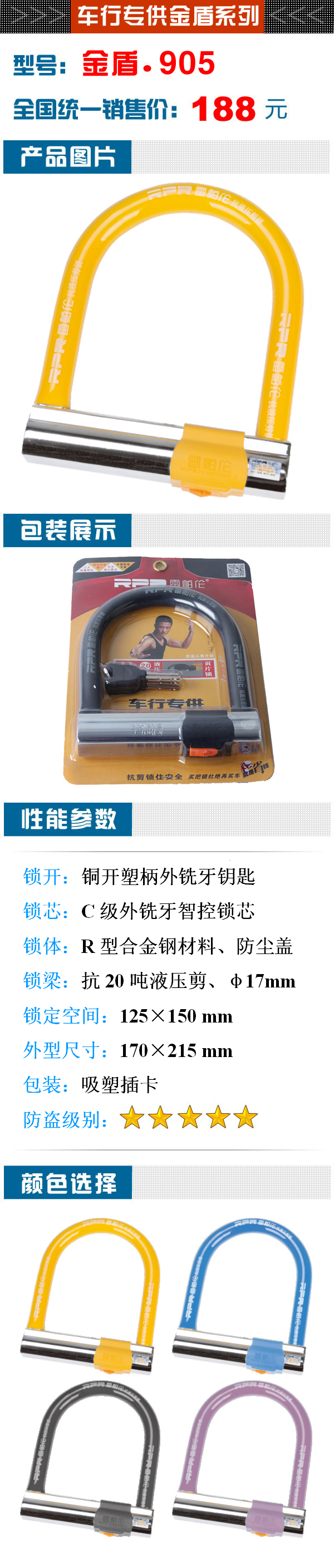 雷帕倫金盾系列鎖具,是您電動(dòng)車、摩托車、助力車防盜必備佳品,為您的愛(ài)車上一道安全保障,使您的愛(ài)車出行更安全,防止被盜。