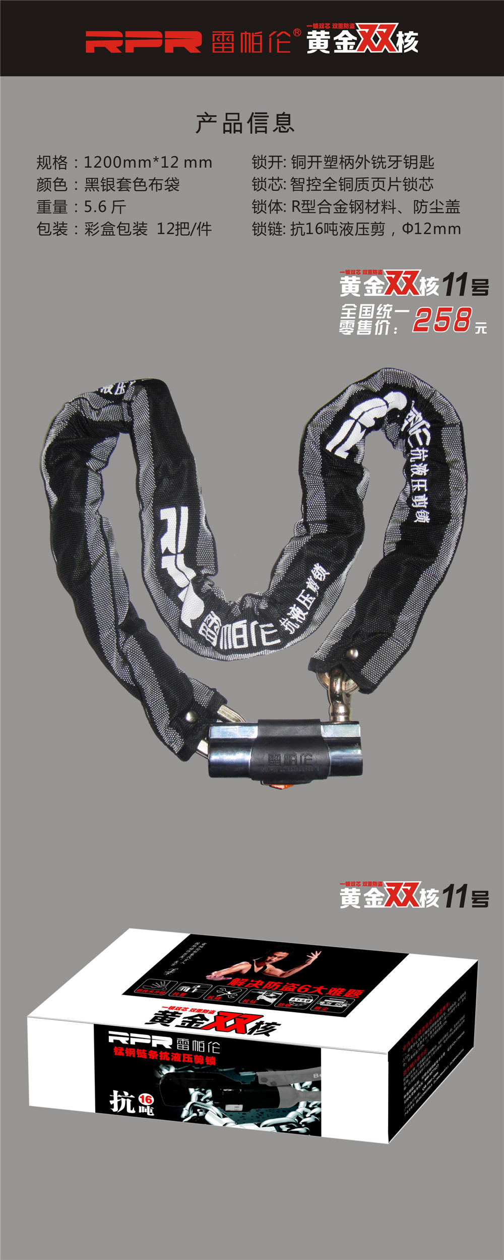 雷帕倫黃金雙核系列鎖具,是您電動(dòng)車、摩托車、助力車防盜必備佳品,為您的愛車上一道安全保障,使您的愛車出行更安全,防止被盜。